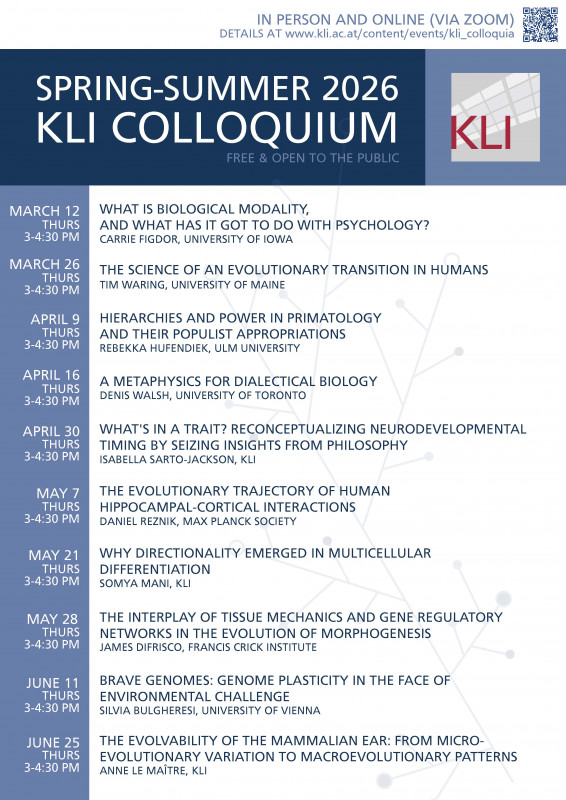 KLI Colloquia are invited research talks of about an hour followed by 30 min discussion. The talks are held in English, open to the public, and offered in hybrid format.